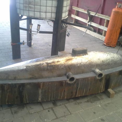 Using a model, we make a silicone mould, which is used to make a wax model. The wax model is then covered with a fireclay material.